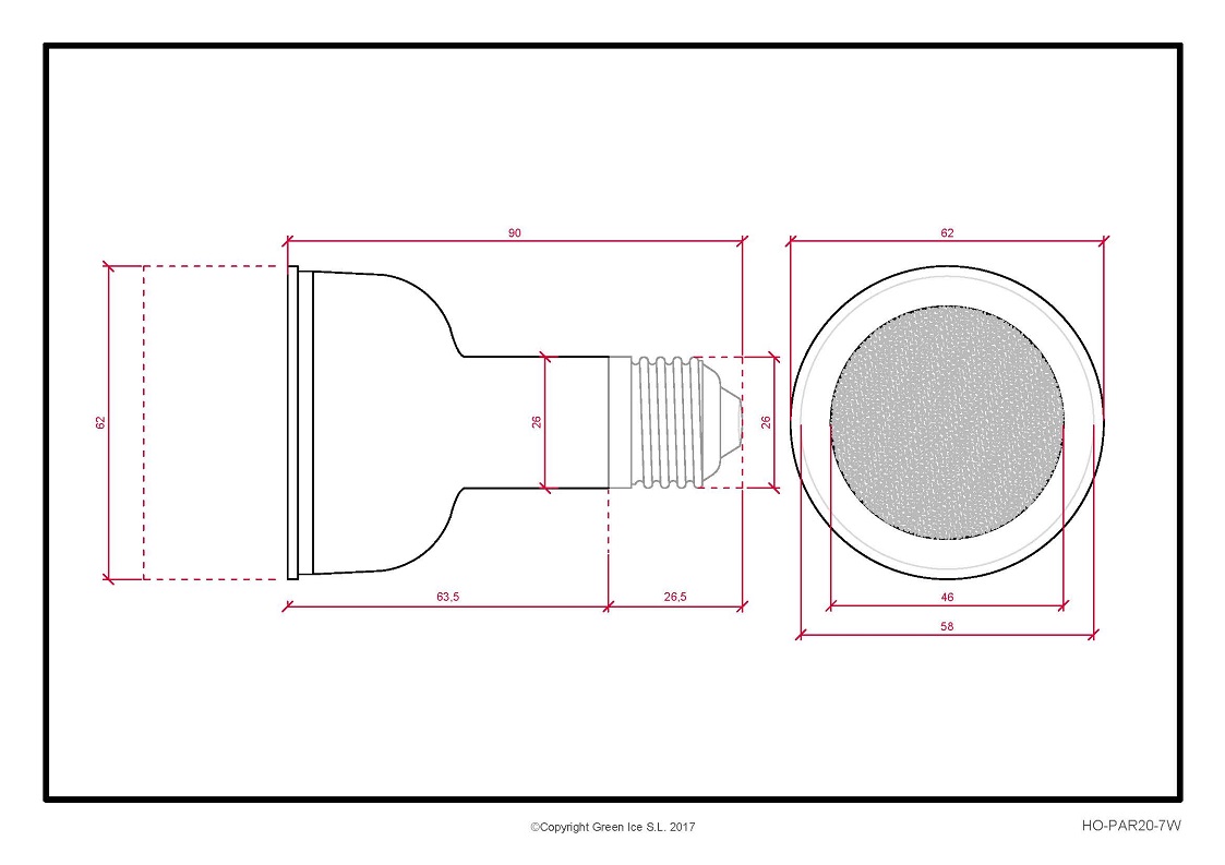 E27 LED žárovka 7W 550Lm 6000ºK PAR20 40 000H [HO-PAR20-7W-CW]