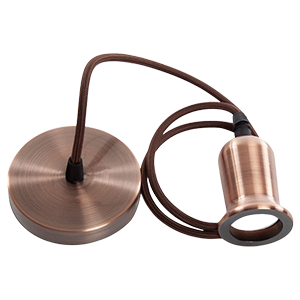 Denne lampeholder har en diameter på 49,2 mm og en højde på 85 mm, den indeholder en drejekontakt, den har en kobberfarvet finish, den kommer med et 5000 mm lyseblåt kabel.