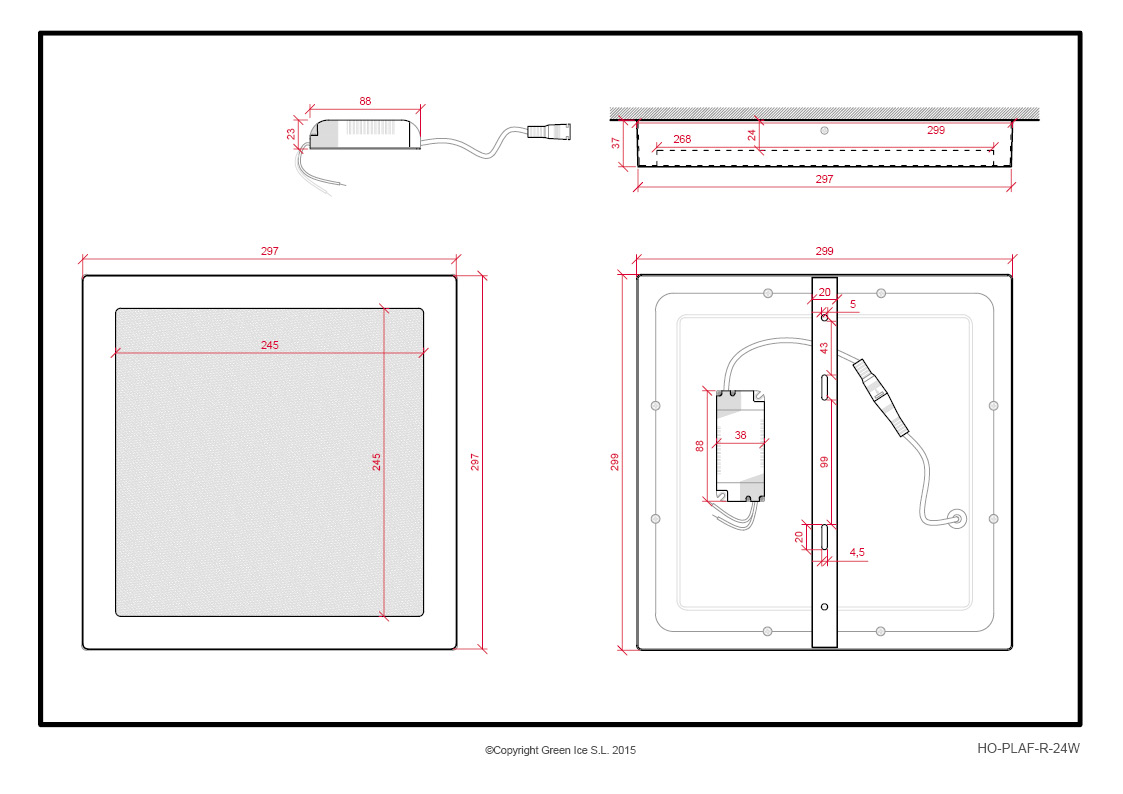 LED ceiling light 24W 1778Lm 3000ºK Square 40,000H [BX3-PLAF-R-24W-WW]