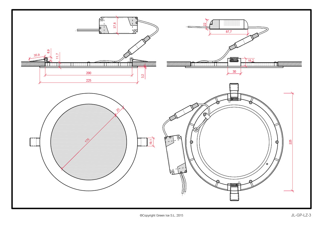 Downlight LED Slimline 18W 1318Lm 3000ºK Circulaire 40 000H [BX3-RDP13-18W-WW]