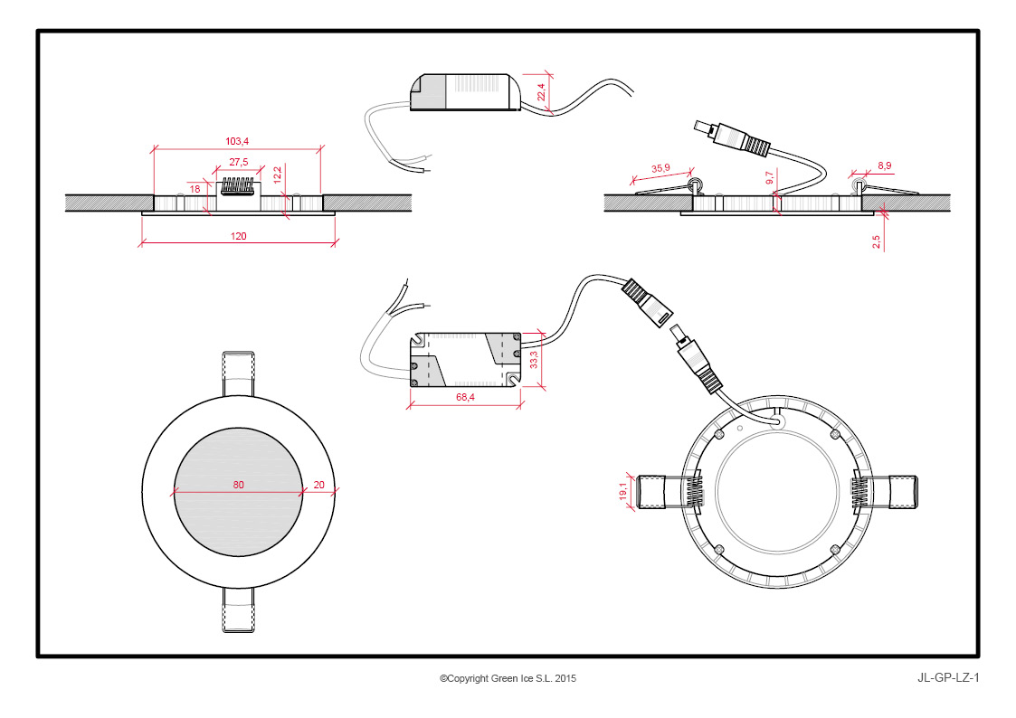 La plaque LED circulaire de 120 mm de diamètre aux dimensions ultra-fines (18 mm), offre des solutions pour les bureaux, les usines, les supermarchés, les magasins et pour un usage résidentiel. Il peut être installé directement sur des prises de courant alimentées par le réseau électrique (85-265VAC) avec une fréquence de service de 50/60Hz.