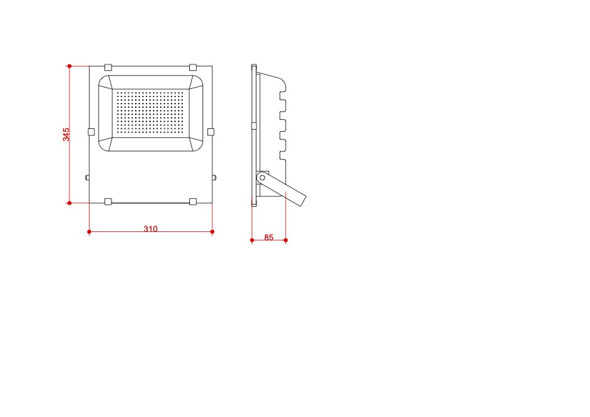 Il a une puissance de 150W, une alimentation de 190W -260VAC, un facteur de puissance de 0,99 et une optique SMD. Son degré de protection IP65 le rend idéal pour l'extérieur. Son indice de rendu des couleurs (IRC) est Ra>80 et sa durée de vie estimée est de 30 000 heures.