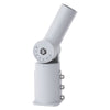 Braccio articolato in alluminio progettato per l'installazione di un apparecchio di illuminazione pubblica su un palo o una colonna stradale. La parte con il diametro maggiore si fissa a pali con un Ø massimo di 65 mm. La parte con il diametro più piccolo incorpora tre viti per fissare apparecchi di Ø 50 mm con un angolo da 0 a 180º.