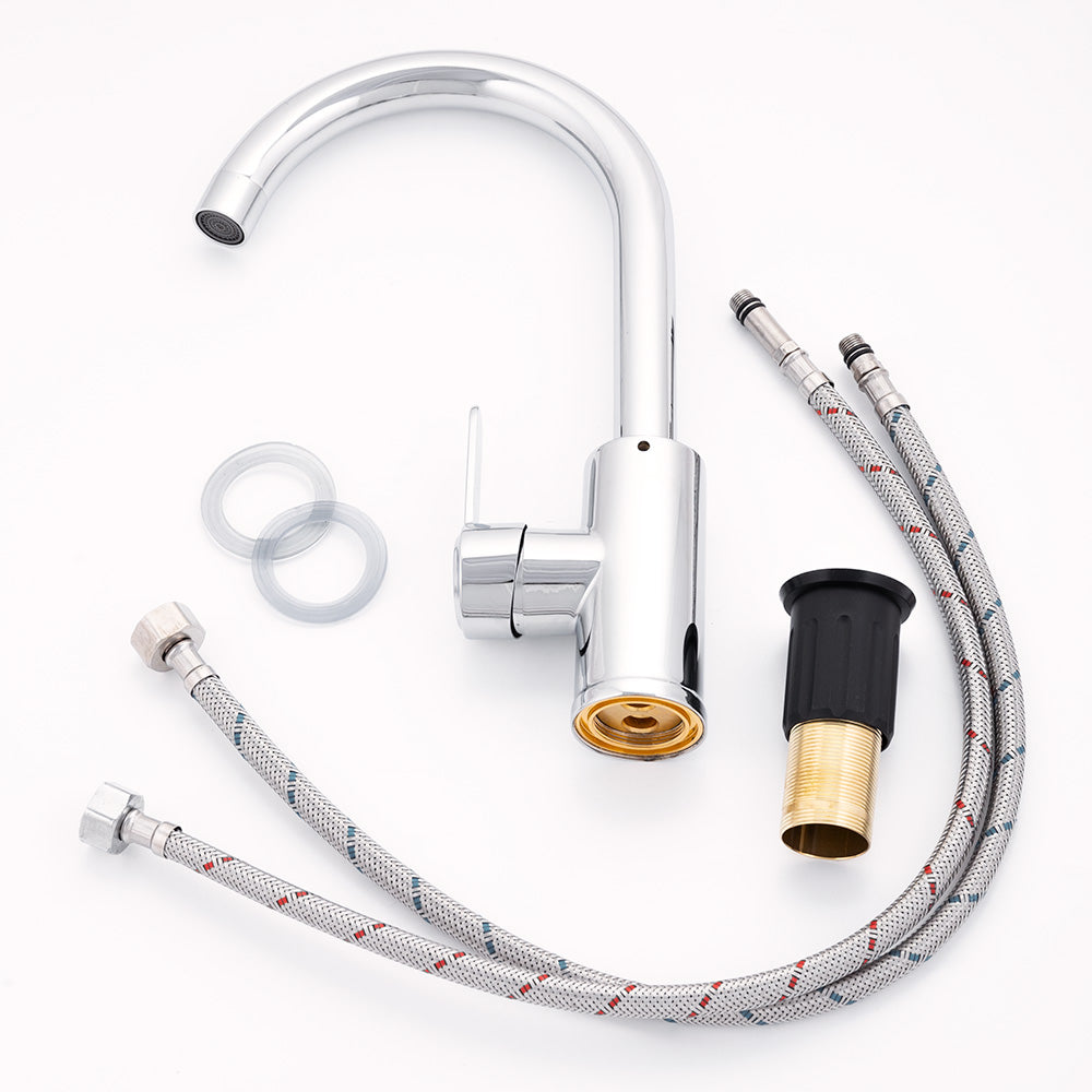 Rubinetto per lavabo Lega di zinco, cromo, acqua calda e fredda, tubi flessibili, bocca alta, maniglia singola [QLI-FA978]