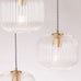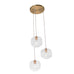 La Lámpara Colgante Cristal Kolpino está fabricada por un florón metálico en acabado dorado y tres pantallas de cristal que cuelgan de tres cables textiles. Sus pantallas hacen que sea su principal característica de diseño, en la elaboración trabaja una forma esférica con sutiles relieves y una combinación de colores vivos como el naranja, gris y beige que rememoran las lámparas clásicas de los años 20.