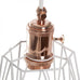 Este portalámparas tiene un diámetro de 49,2mm y una altura de 85mm, contiene un interruptor rotativo, tiene un acabado en color cobre, viene con un cable color blanco de 5000mm y una jaula hexagonal color blanco.