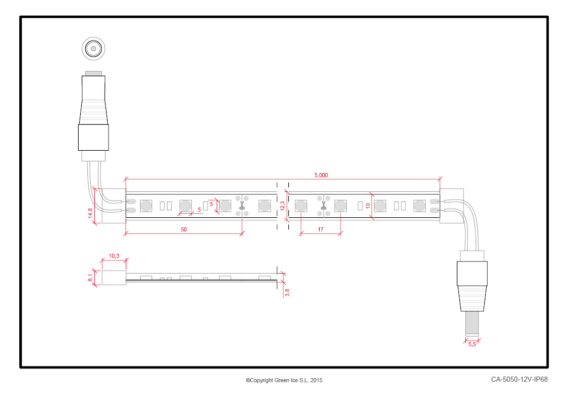 Tira de 60 LED 72W 4 000Lm CRI85 6000ºK SMD5050 12VDC IP68 Sumergible x5M 40 000H [CA-5050-12V-IP68-CW]