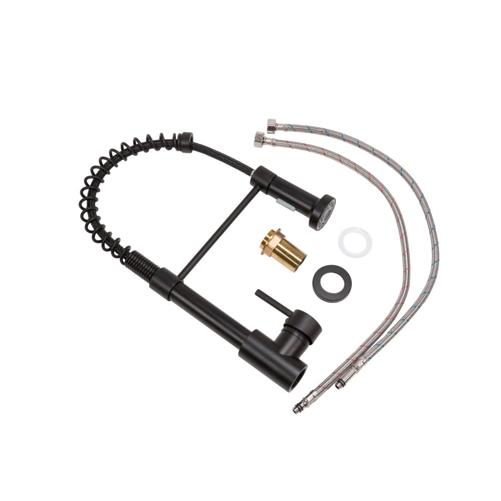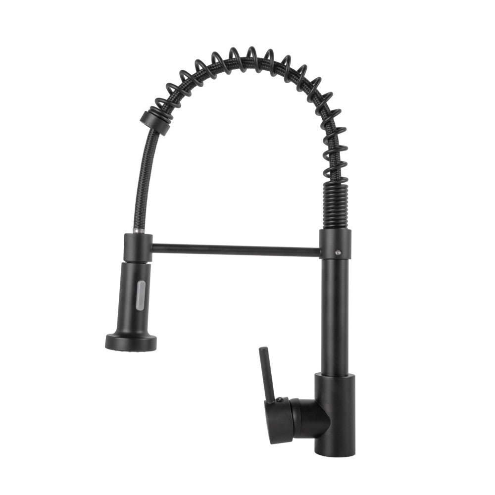 Mosadzná/zinková kuchynská batéria, čierna, teplá-studená voda, hadice, vysoký výtok, páka [QLI-FA-4319]