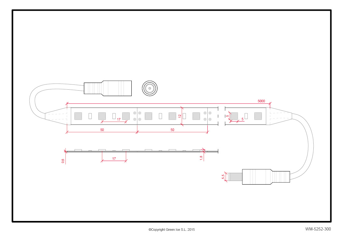 Remsa med 300 lysdioder 60W 15 000 Lm 6000ºK SMD5252 12VDC IP20 x5M 50 000H [WM-5252-300-CW]-Kallvit